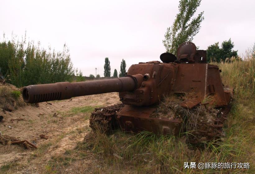被遗弃在郊外的坦克、汽车被铁锈包裹着,周围杂草丛生。