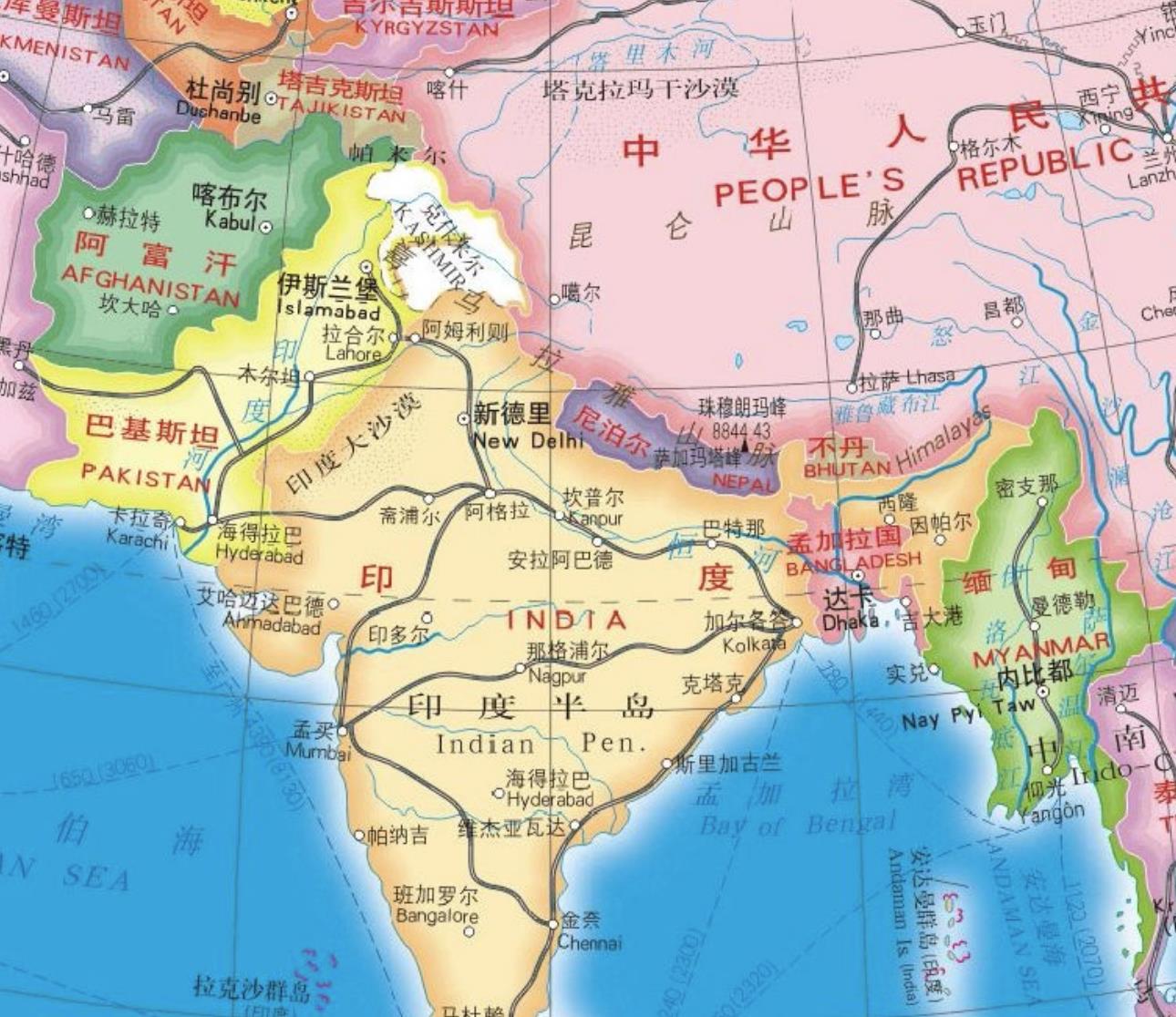 【横跨】:巴基斯坦。