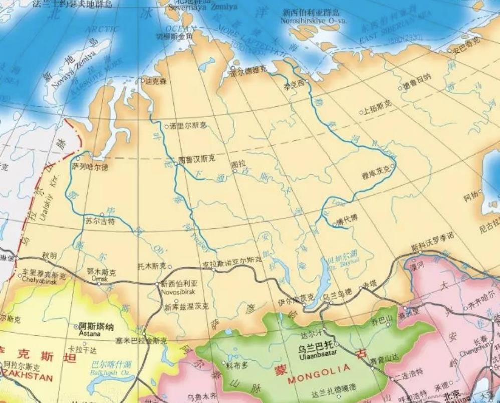 【穿越】:中西伯利亚高原和西西伯利亚平原之间。