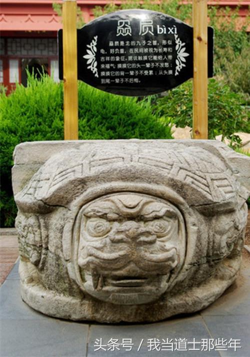 老大赑屃(bi xi):也称龟趺。形状像乌龟,好负重。长年累月地驮载着石碑。人们在庙院祠堂里,处处可以见到这位任劳任怨的大力士。据说触摸它能给人带来福气。