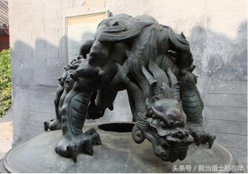 老三蒲牢:形状像龙但比龙小,好鸣叫。据说蒲牢生活在海边,平时最怕的是鲸鱼。每每遇到鲸鱼袭击时,蒲牢就大叫不止。于是,人们就将其形象置于钟上,并将撞钟的长木雕成鲸鱼状,以其撞钟,求其声大而亮。