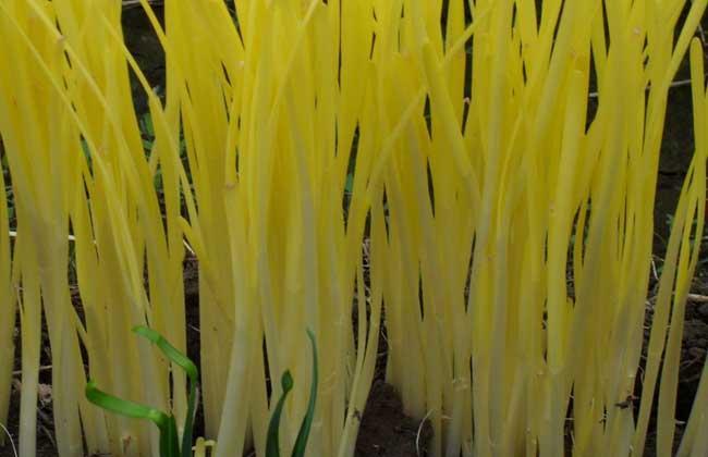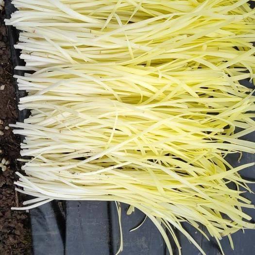 韭黄也称"韭芽"、"黄韭芽"、"黄韭",俗称"韭菜白",为韭菜经软化栽培变黄的产品。韭菜隔绝光线,完全在黑暗中生长,因无阳光供给,不能进行光合作用,合成叶绿素,就会变成黄色,称之为"韭黄"。