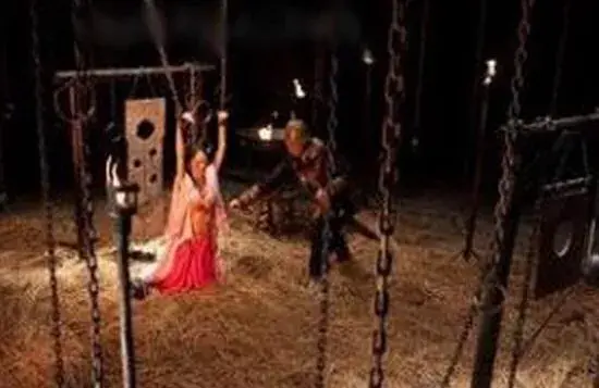 在一篇名叫《活地狱》的小说中,有一个女犯,因为不愿顺从,被官媒婆先是伸手三四个巴掌,打得她跪在地上,苦苦哀求,然后又叫人从梁上放下一根又长又粗的麻绳,把这女犯揿倒在地,将她的手脚如同捆猪一般捆住,再把大麻绳一头穿在她的手脚之中,穿好之后,打了一个死结,再将麻绳另一头用力拉,霎时间便把这女犯高高吊起。