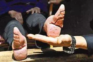 他们又花钱买通行刑衙役,在行刑时对受刑女子百般凌辱。衙役干这行是很在行的,他们的手段有「掘芋艿」、挖荸荠」、「剖葫芦」、「剥菱角」等名目。有时县官还未升堂,衙役先把被告女子裤子脱掉示众,随即拉到门前大街上,名曰「卖肉」。遇到这样的情况,有的妇女受不了这样的羞辱,回去后便自尽而亡。还有一种惯例:被告妇女必须光着脚过堂。