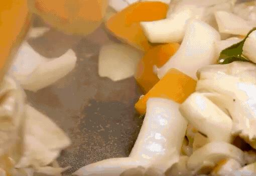 4、加入椰奶、鸡汤继续煮 10 分钟或者至收汁完成,关火前加入辣椒粒、青柠汁、鱼露及糖拌匀即可。