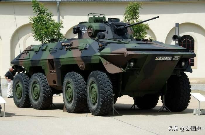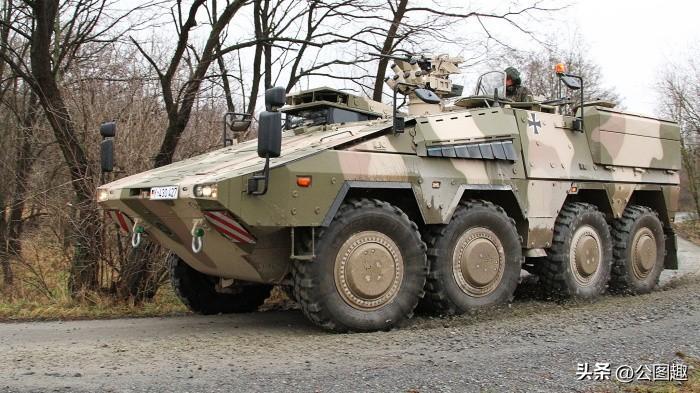 德国装甲车家族的另一位成员。显然,今天德国国防军的轮式装甲车喜欢用犬科动物命名。拳狮犬装甲车只有2名乘员,最多可以搭乘10名士兵。高速公路上的动力储备为800公里,最高时速为105公里/小时。 标准武器为3挺12.7和7.62毫米口径的机枪,安装在不同的地方。