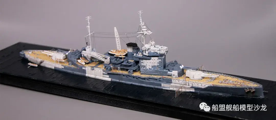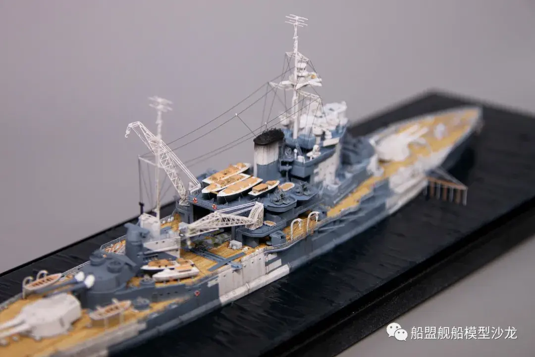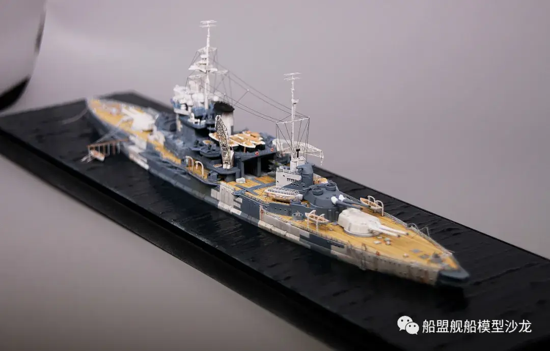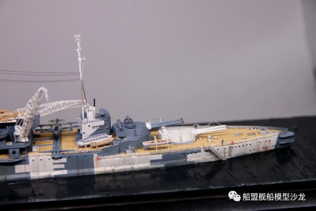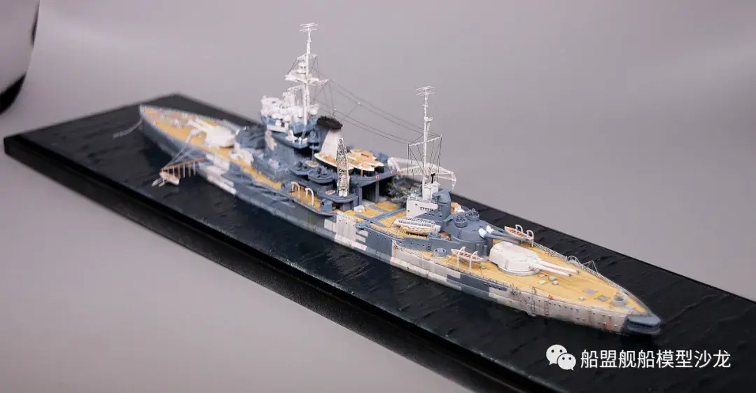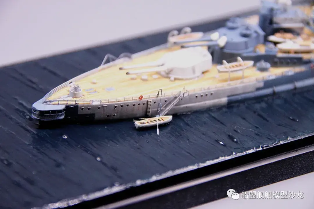其实说起厌战这艘船,它的历史真的是三天三夜也讲不完,这艘功勋舰的经历实在是太多了。不过回想起来,伊丽莎白级这几艘都是从一战打到二战,哪艘经历都不少,要开这个专题的模型,各个时期的背景了解都要做个几天的功课。小编当然也是属于那种随性做船的玩家,在考证方面也比较随便,只求一个形似,特别细节的方面并没有考虑太深。比如这个厌战,炮管就是德国380炮管,哈哈哈这里已经被熊版指出来了,下次制作的时候肯定会特别注意。