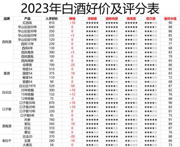 性价比代表酒:华山论剑系列、西凤15年、绿脖。
