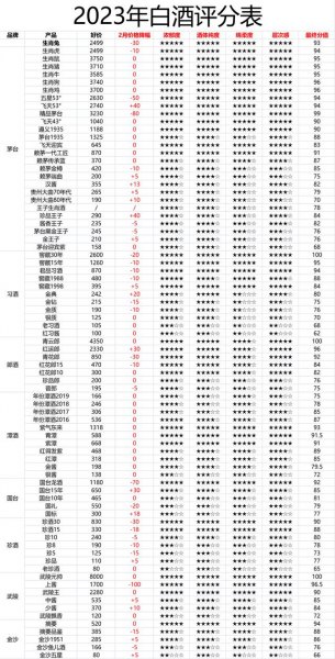 其实在业内,酒质是有参考标准的,专业品酒师一般都会从几个维度品评,我参照专业品酒师的指标,结合酒体纯度、浓郁度、层次感、绵柔度,给酒做了一个评分,供大家参考,这个评分只适用于自饮,不适用于宴请、送礼、投资等场景。