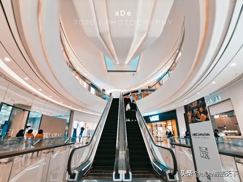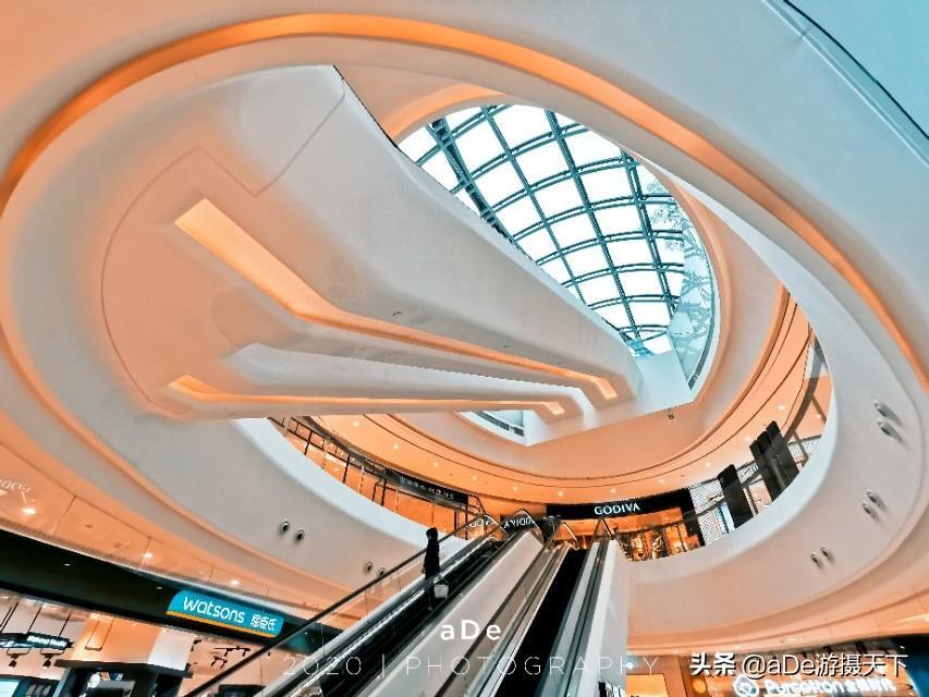 进入商城后,每层天花都运用了这种“S”水流型设计。路的形态等同于水,S水流型;这种地理错觉会让里面的人忘记流连时间的感觉。除了天花,扶梯也运用了风水布局,扶梯上下错开了一定的角度,显得扶梯的位置十分隐秘,它与天环相距不远的太古汇也是这个阵法的代表。