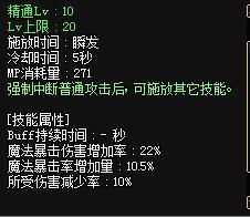 源能专家的主动BUFF为源能应用,开启BUFF以后会增加角色的魔法爆伤和魔法暴击率,并且减少角色的所受伤害率,技能十级精通,满级为20lv,也就是说我们在十级精通的情况下还可以叠加10lv的等级,所以BUFF的叠加以等级为主配合异界套加成达到伤害的累积。BUFF每级增加2%的爆伤和0.5%的魔法暴击率,另外在BUFF达到20lv的情况下增伤达到60%。