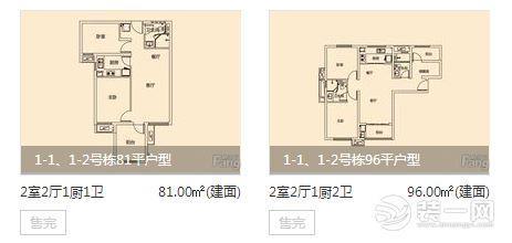 长沙中航城国际楼盘户型图:两居室(81平米-96平米)