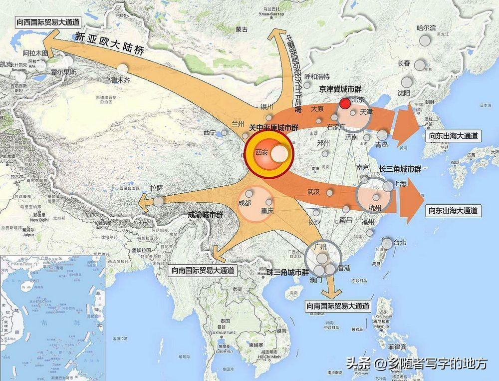 地处我国内陆中心,是亚欧大陆桥的重要支点,是西部地区面向东中部地区的重要门户。贯通西部地区的南北通道和新亚欧大陆桥在此交汇,以西安为中心的“米”字型高速铁路网、高速公路网加快完善,国际枢纽机场和互联网骨干直联点加快建设,全国综合交通物流枢纽地位更加凸显。