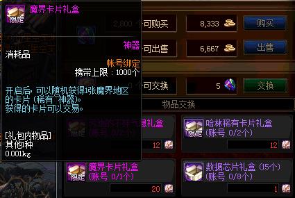 在95版本开放之后,很多玩家在搬砖或者升级的过程中都会获得一些哈林区域的卡片,而且大家除了在游戏中获得哈林区域卡片外,有的小伙伴会选择到到南瓜球的时空石交易商店用时空石兑换五芒星币然后兑换魔界卡片礼盒,礼盒可以随机开出魔界的稀有卡和神器卡片,一些运气好的朋友开魔界卡片礼盒开出来皎玉之哈尔特的卡片就赚大了,当然在大多数的情况都是开出来稀有卡片。
