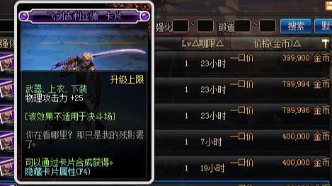 接下来小编给大家举一个例子,大家可以看到上图是一张飞剑吉利亚卡片,当大家遇到这种可以升级且属性是有人用的情况,那么大家可以选择把卡片升级,这张卡片白板可增加21点物理攻击,升级两次满级,未升级的卡片在12W左,而满级的卡片可以卖出40W左右的金币,中间的差价在28W左右,若按照一张升级用的胚子卡7W价格,平均升级三次成功的话,升级用的成本大约在33万金币,扣除手续费后可以多赚5W金币左右。