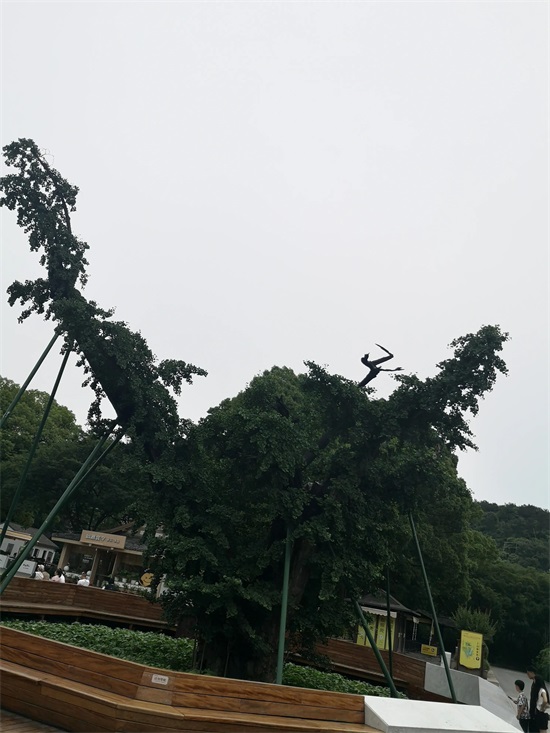 随台阶下行,看到千年古槐,那古槐向向两边深去,绿叶成形,虽然古老,但生命力极强。