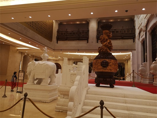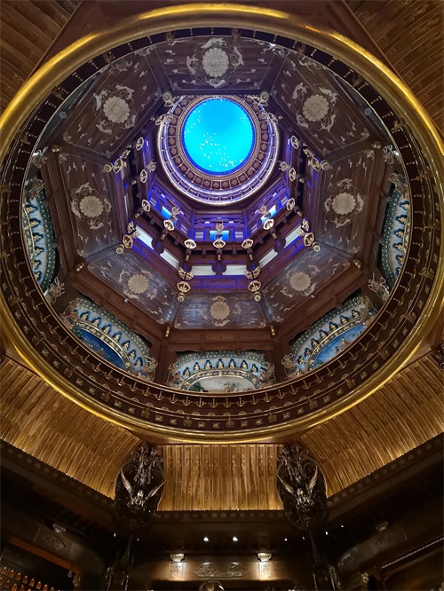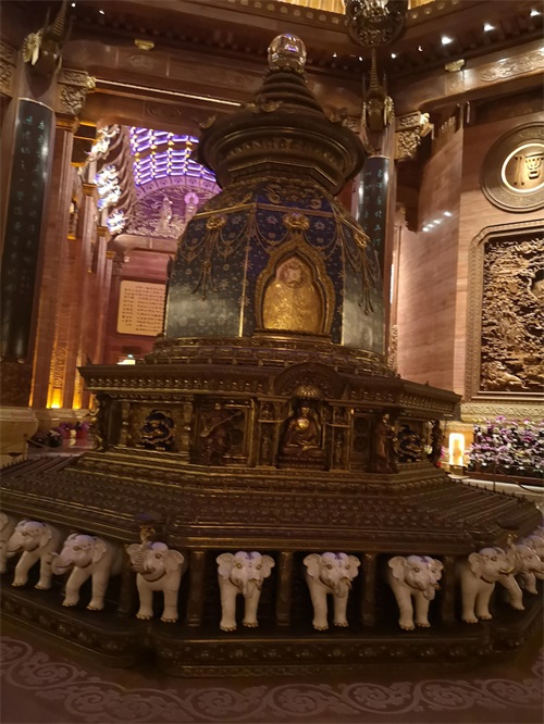 我们来到梵宫,穿鞋套,慢行走,静谧静心,无人说话,内心祈祷。经过汉白玉大象,白色栏杆,进入大厅,每一处都值得观赏。一一拜过,抬头仰望苍穹,蓝色星星闪烁,透亮高雅,再看那四面雕刻,那造型那场面,人物景像栩栩如生,立体感极强,不得不被我们国家的能工巧匠的技艺所折服,真是巧夺天工,登峰造极。