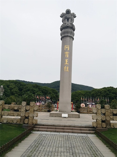 先看到的是阿育王柱,好高好高,挺拔壮观。后面是连绵的青山;前面是宽阔的广场,流连片刻,乘观光车向大佛走去。