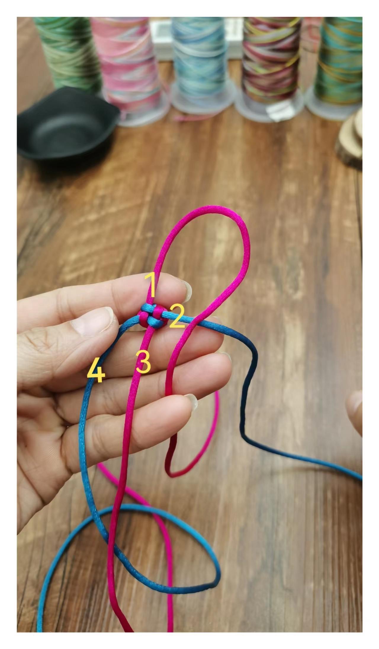 固定好后就形成了下图的4根线来进行编织的情形。