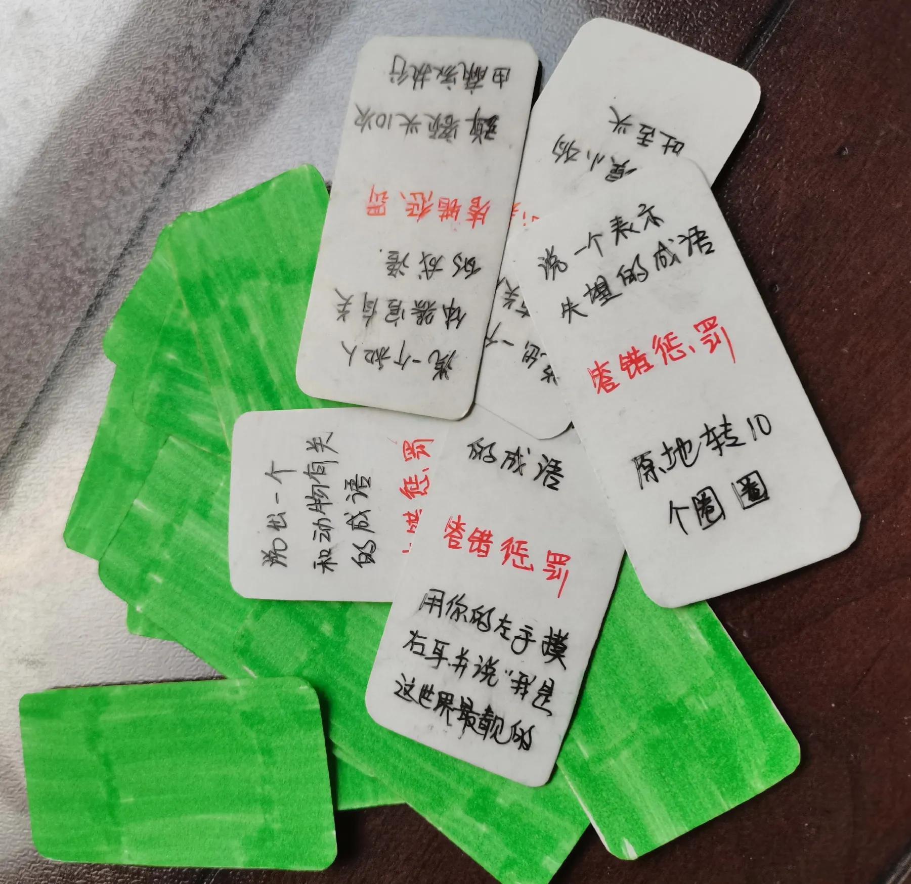 有输赢,就要有惩罚,设置一些有趣的惩罚,孩子会很喜欢玩的,我和我儿子玩成语接龙设计了很多有意思的小惩罚,很喜欢玩如下图,就是我成语接龙设计的小惩罚,大家可借鉴