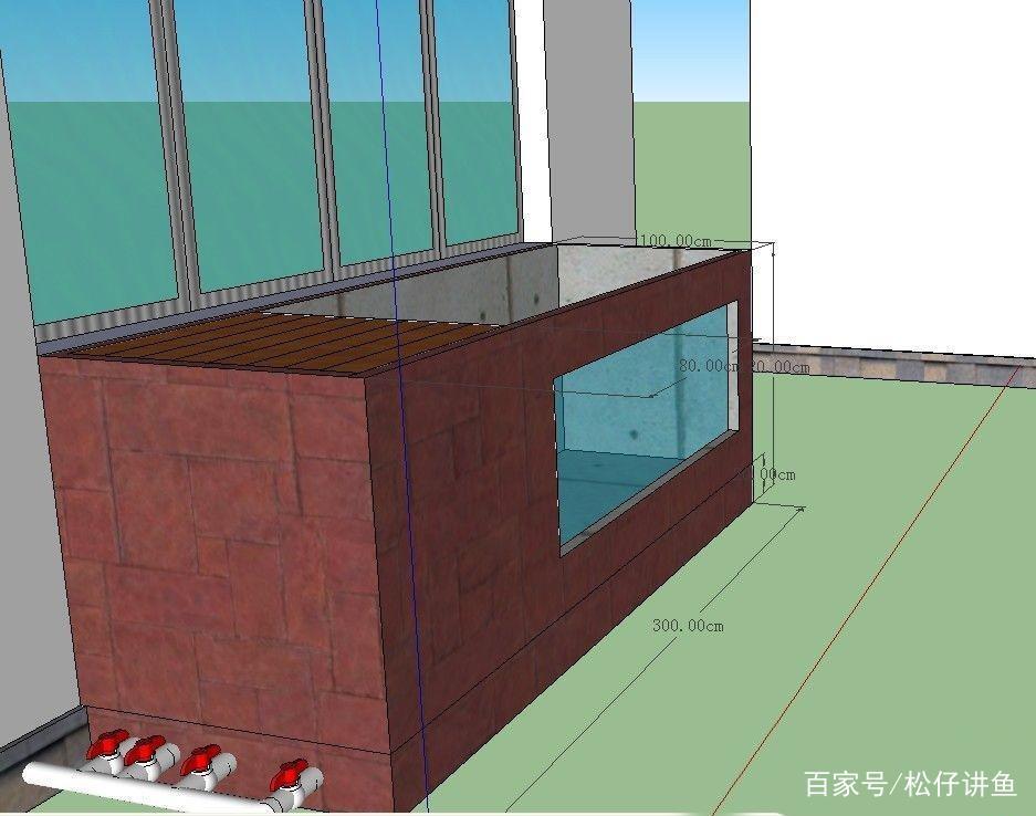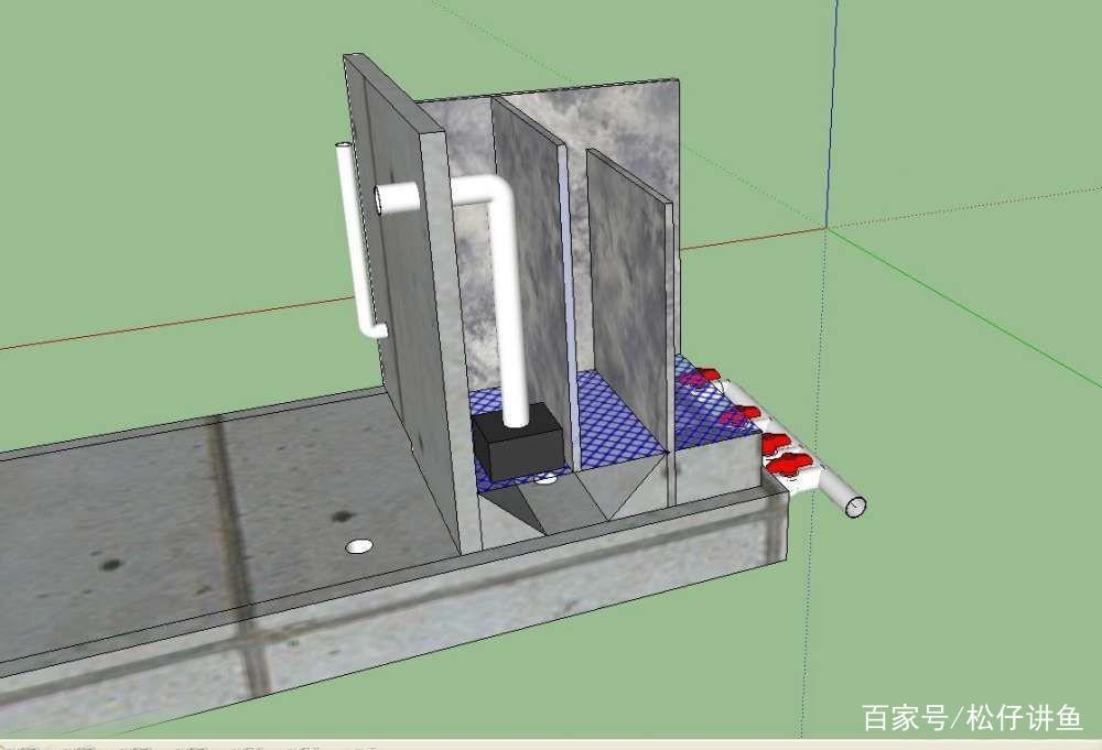 这是整体效果,鱼池长3m,宽1.2m,水深1m;过滤长1.2m,宽0.8m,每格过滤水位落差10cm;