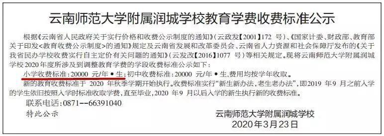 最高2万/年!昆明多所名校小学学费出炉!云大附属会展学校1.8万、师大附属润城学校2万…