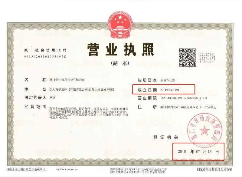 天眼查经营风险提示,厦门壹生信息科技有限公司曾在2016年2月2日因商品标签不符合规定被厦门市同安区市场监督管理局处以行政处罚。
