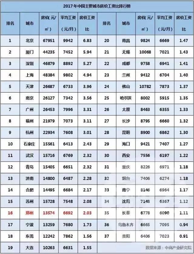 房价工资比,这个指标在一定程度上可以反应流动人口在某座城市定居难易程度的大小。相比较北上广深等强一线城市,如今作为准一线城市的郑州,已经成为很多河南人工作、生活以至定居的首选城市。作为一个拥有过亿人口的大省,伴随着经济持续强劲的发展,相信未来会有更多的高素质人才从其他地区流入郑州(目前主要还是以省内人口流动为主)。