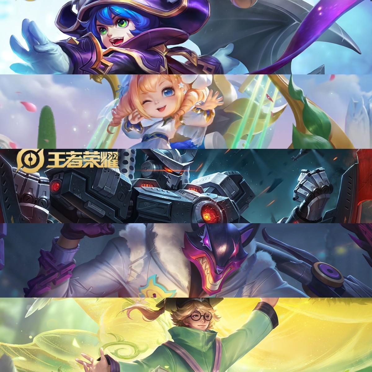 李元芳-黑猫爱糖果,蔡文姬-繁星吟游,墨子-进击墨子号,庄周-奇妙博物学,白起-乐园追猎者