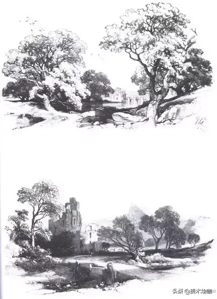 小编找了近40幅风景素描图