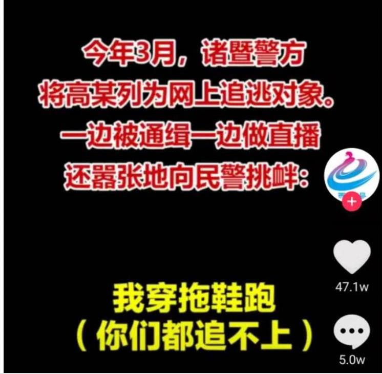 直播平台得知高某是逃犯后,立即将他账户关闭,第一时间联系警方协助抓捕。