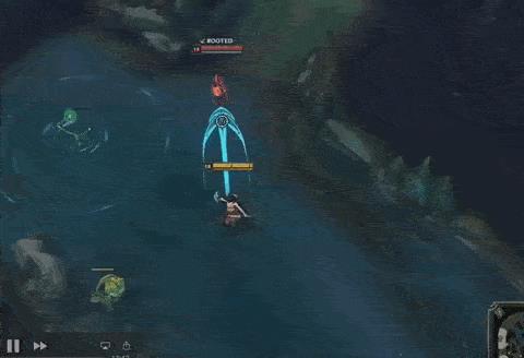 这是阿卡丽重做后拥有的一个全新技能,也是阿卡丽的一个很强的位移技能,阿卡丽向目标处掷出一把剑并向后移动一段距离,而剑在命中第一个敌人英雄或者烟幕弹后会造成一定伤害并刷新被动标记,如果再次释放,阿卡丽会回到手里剑的位置再次造成伤害,距离很远也很强势!