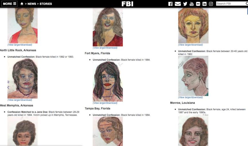 为了尽量找到一些丢失的罹难者,FBI还博门创造了一个博案网站,名为“confessions of a killer”(一个杀手的供述)。网站上颁布了局部案件的信息,包罗案情刻画的视频和利特我手画的罹难者画像。