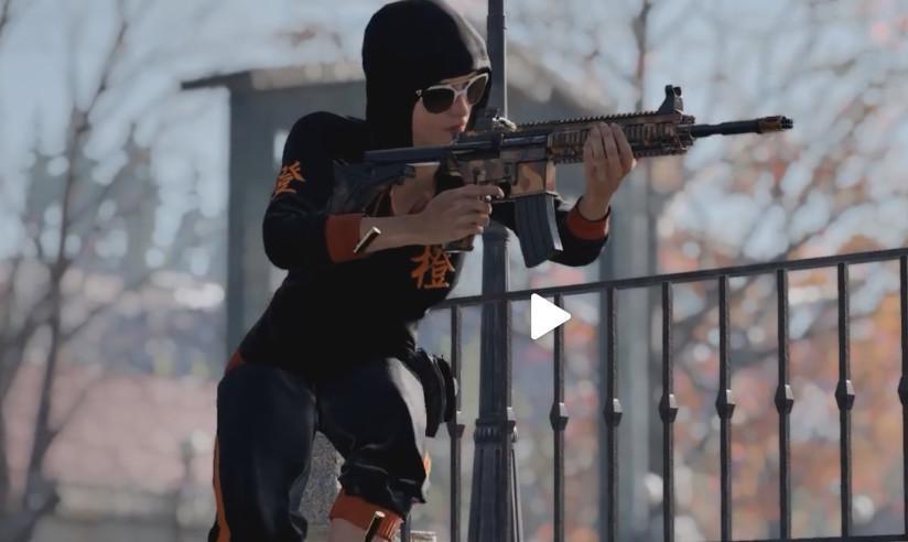 然后是战旗的主播橙子,他和星魂一样,将自己的ID印在了衣服和枪上,衣服的胸口上,背上都有一个大大的“橙”字。