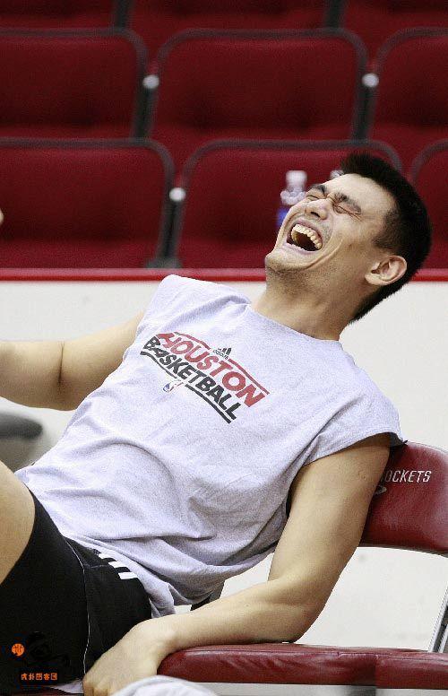 我真的很喜欢姚明的表情,每当看姚明这些图片,我就会忍俊不禁,我想有很多球迷和我一样,很喜欢姚明那种亲切感很强的笑吧!