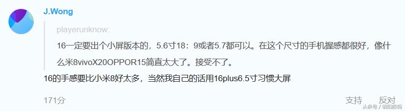 根据黄章之前所说:16的手感要比小米8好太多,当然我自己的话用16plus6.5寸习惯大屏。我们可以知道,黄章想把手机做的小巧,以至于有优秀的手感。因此这张配置表的可信度还是很高的。