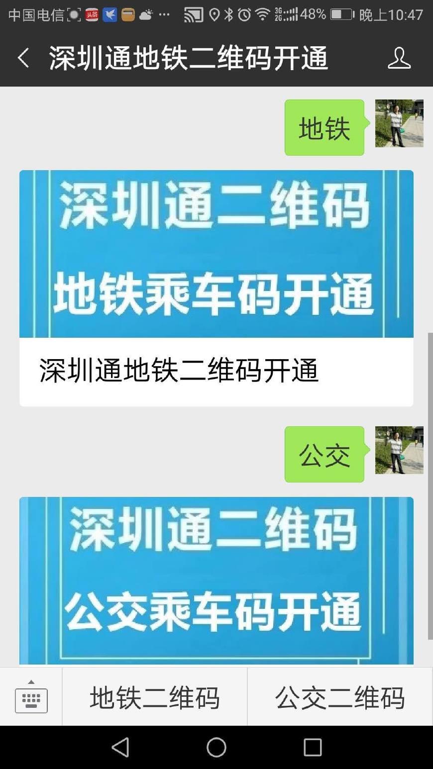 在微信小程序中,关注深圳通二维码公众号后,既可以用于深圳地铁的进出站扫码,又可以用于深圳公交的乘车扫码。