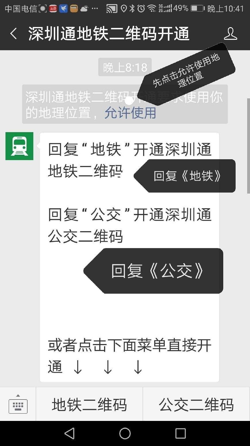 回复《地铁》后开通地铁乘车码,回复《公交》后开通公交乘车码。