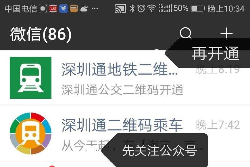 一、先关注深圳通二维码后,再开通乘车码。