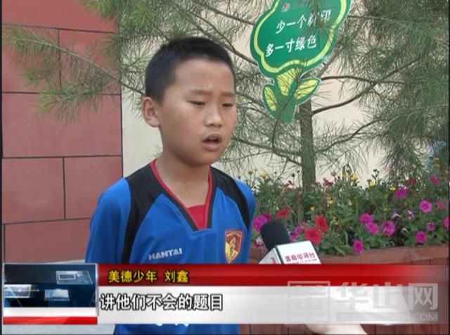 刘鑫:我获得了这个称号,以后我会帮助同学们将他们不会的题目,帮助老师做力所能及的事情,以后我要把美德少年这个称号发扬光大,继续帮助别人。