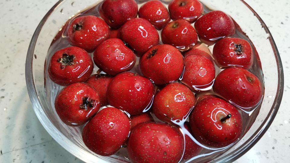 第一步:把山楂放进大碗里,放一勺盐浸泡一会,充分搓洗山楂的表面,这样可以有效的去除杂质和农药残留。