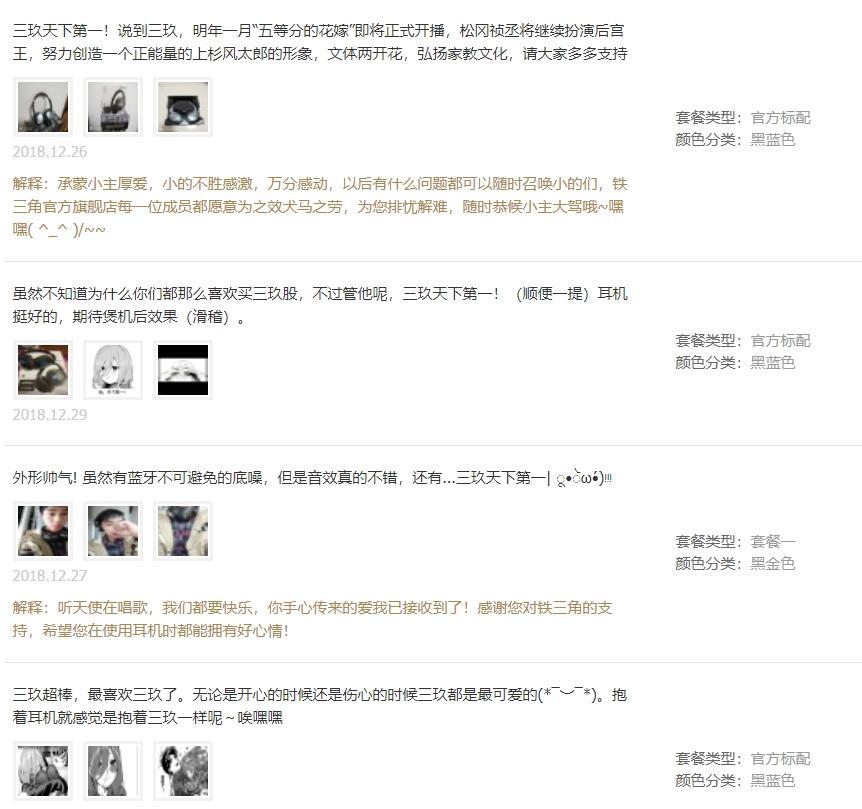 且在官方给出石锤之后,铁三角相关商品下方立刻被"三玖天下第一"的言论铺满了,不得不说我们三玖粉真的是相当有排面