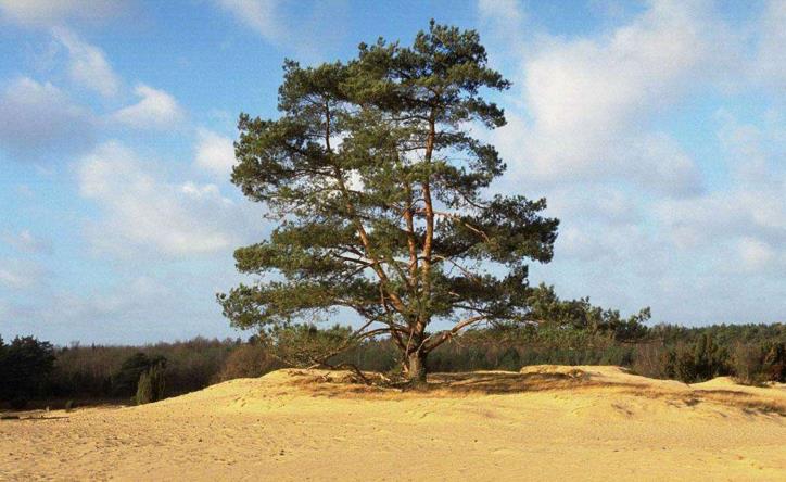 比起梭梭树和沙柳,樟子松看起来才真的像一颗树。樟子松属于松科植物,生长一般在15-25米左右,树木生长快,适应力强。
