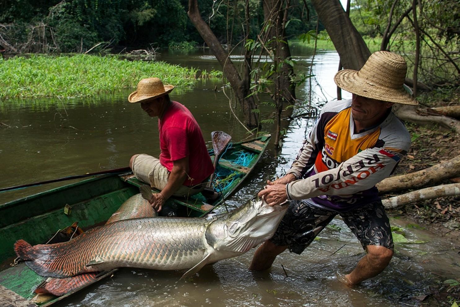 在南美洲的亚马逊河流里,有一种鱼是世界上最大的淡水鱼,它就是巨骨舌鱼,巨骨舌鱼的体长普通在4米左右,体重能到达200斤左右,人们捕捉它的方式就是用木棍敲晕它的头。