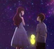 这部动漫电影一直围绕着菜津奈这个可怜却又内心美好的女孩为线索。从影片的开场镜头她独自在教室、在泳池,表现了她内心的孤独,也证实她没有是缺乏爱和关注的。由于父亲的离去,妈妈的三次结婚,她抗拒再搬走、抗拒那个新的男人,所以她才想求助于她能相信和爱的人——典道,她希望典道能够带她私奔,这个私奔其实指的是逃离这个让她压抑的生活环境,带她去变美、带她去唱歌、带她去过上高兴的生活;在她换了衣服在车站外时她就说了“你要负责任啊”,说明她只是一个简单的女孩,只想要一个能爱的人,她只是想去成为一个梦想中的公主,能去过上自己想要的生活。在最后看到最美丽的烟花的时候,周围的环境开始出现了波纹,这个时候已经很明显:这些都只是梦幻。在最后的爆炸中,每个碎片都是他们想象的如果真的一起私奔了的美好景象:他们在游乐园坐旋转木马,他们去了东京看到了彩虹大桥,他们一同过着他们想象中的生活……但是这些都是梦幻,都成为了碎片。在最后将看到的美丽烟花、梦想中的美好、两个人互相表明内心最真切的爱……这些美描绘到了极致,但这些美都只是幻想,就更让人伤感和震撼。最后场景变为了普通的学校生活,开学了,这个时候老师点名:“岛田再婚的家庭,不断被重置的生活使她厌恶,她想反抗却又无法逃脱,哪怕只是一天的自由。