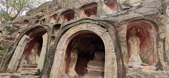 南京有与云冈石窟差不多同时代的我国南方地区开凿最早、规模最宏伟的佛窟群栖霞山千佛岩,共有515尊佛像。其中最早开凿的无量殿中无量寿佛像高达四丈,分侍左右的观音、势至两菩萨像也高达三丈三尺。