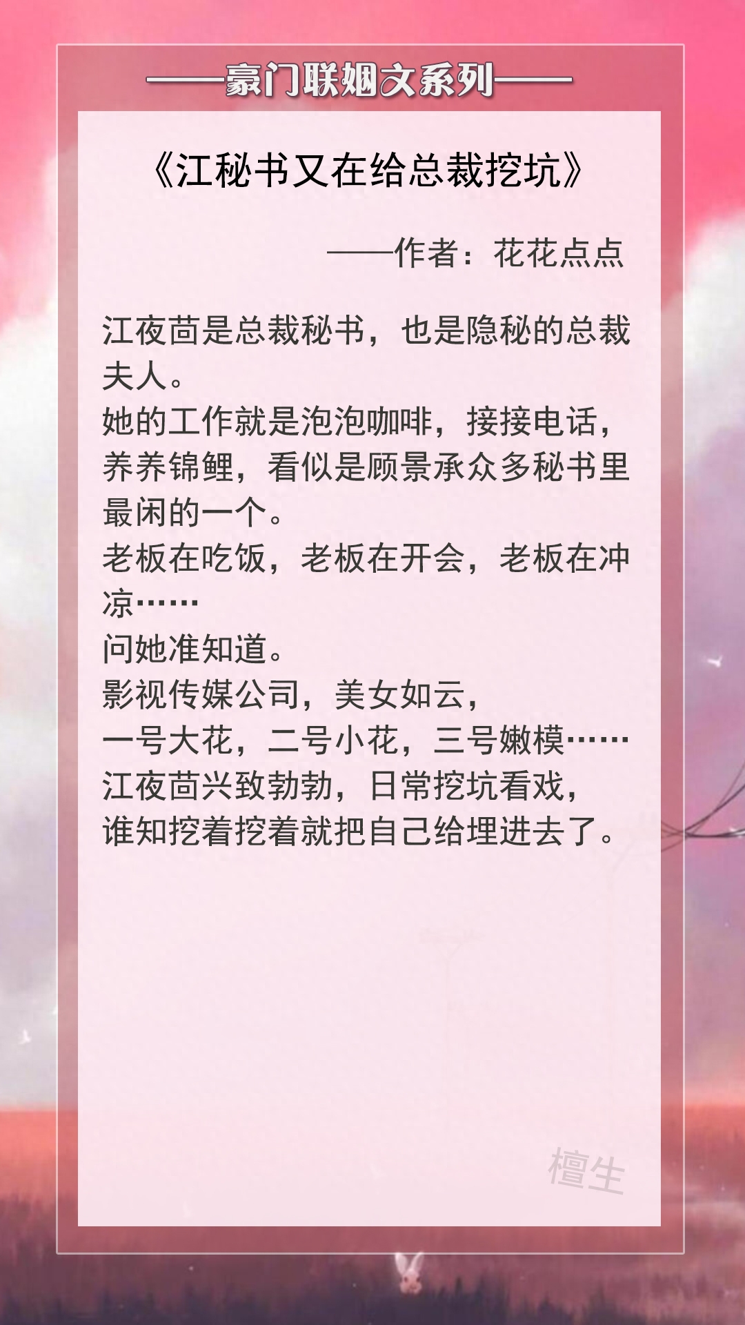 第四本:《江秘书又在给总裁挖坑》作者:花花点点