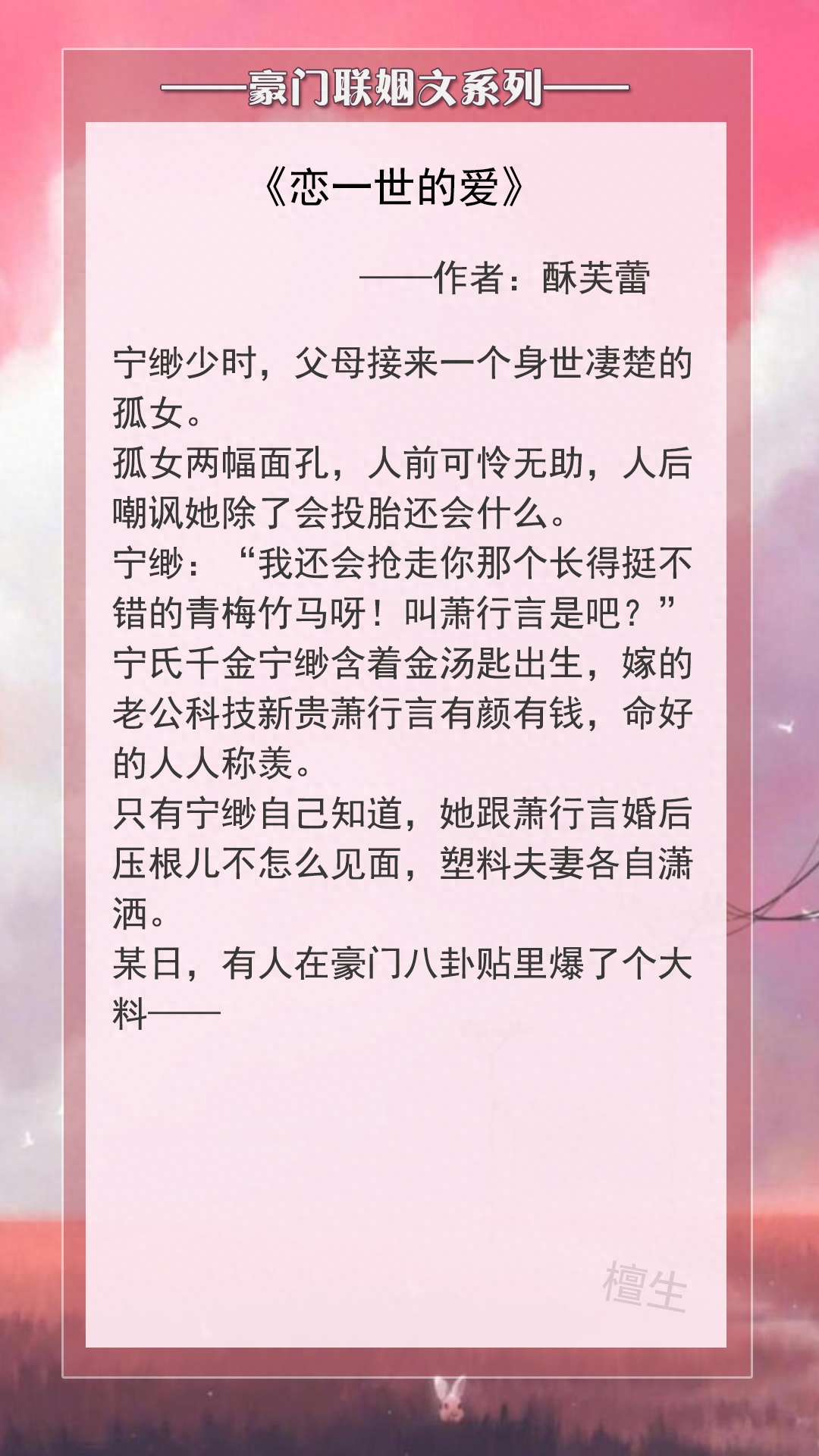 第三本:《恋一世的爱》 作者:酥芙蕾