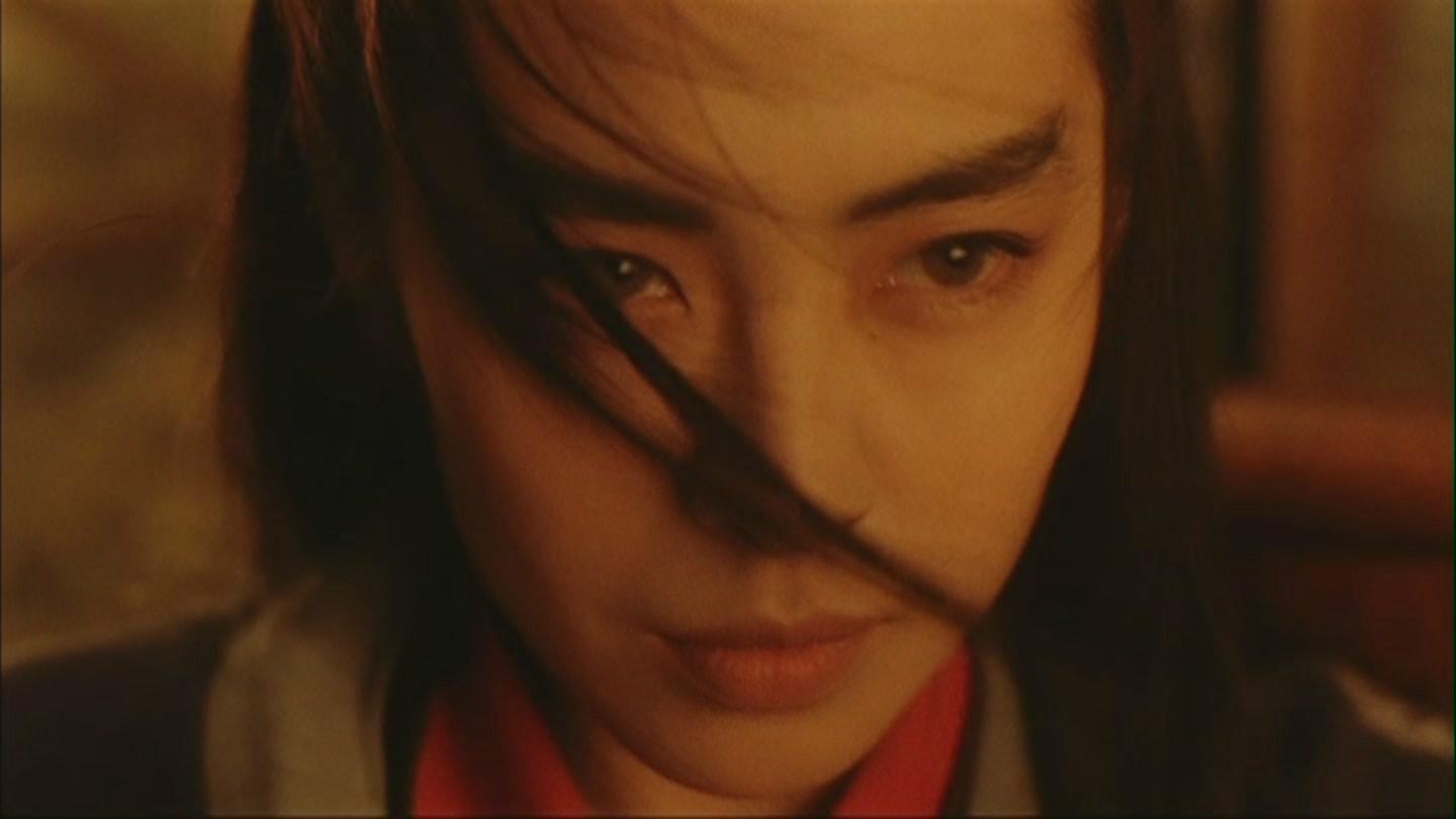 这个一出场,打着东方不败旗号女扮男装的女子。古典的日式男装居然让她英气勃勃,对阵时杀伐决断,眼神时而锋利时而慵懒,让我产生了她就是东方不败的错觉;但是在她一个人的时候,她双眼含泪的说:“我的爱人在哪里”。然后她与真正的东方不败重逢,她将所有的权利都交还给她的情郎,她恢复女儿身,婀娜多姿,唇龄微张,眼波流转,纤腰款款而动,妩媚多情,只想陪伴她日思夜想的人儿,这样的雪千寻让人怜惜,所以千户一遇到雪千寻就爱上了。