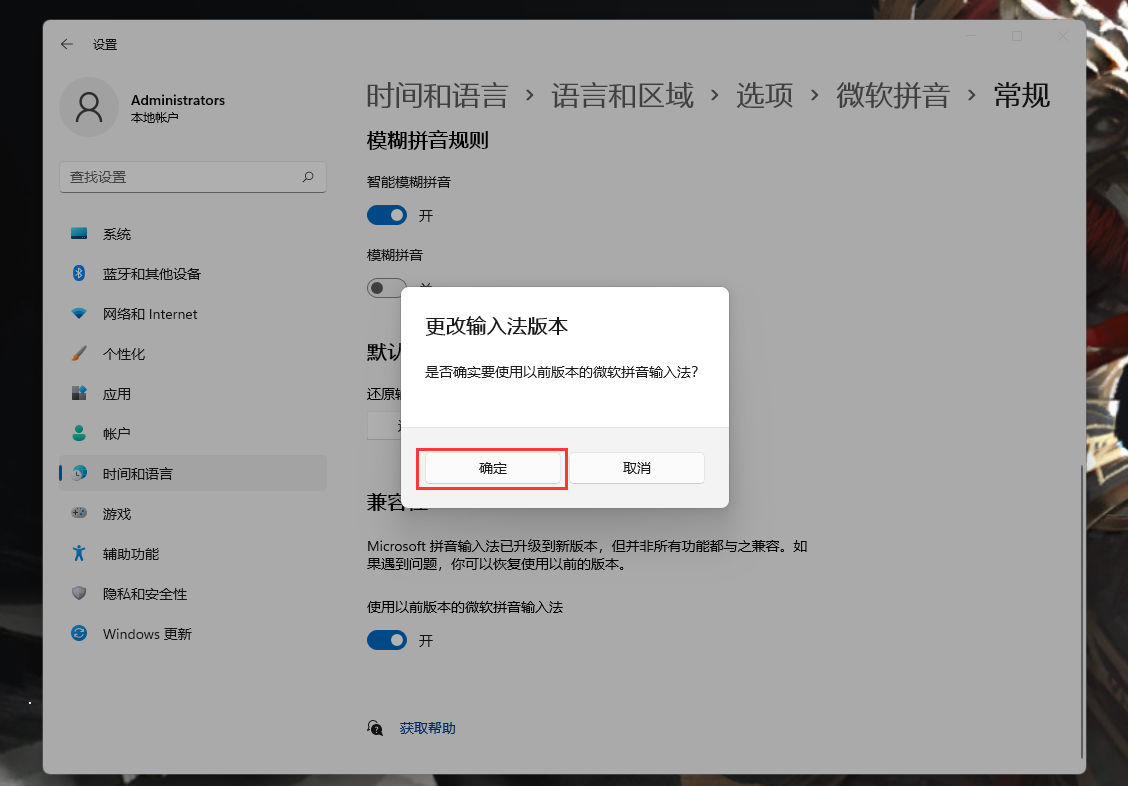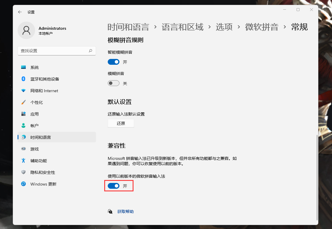 在使用某些软件或游戏时,可能会和Win11默认的输入出现不兼容的情况,可以把输入法切换到以前的旧的兼容版本。